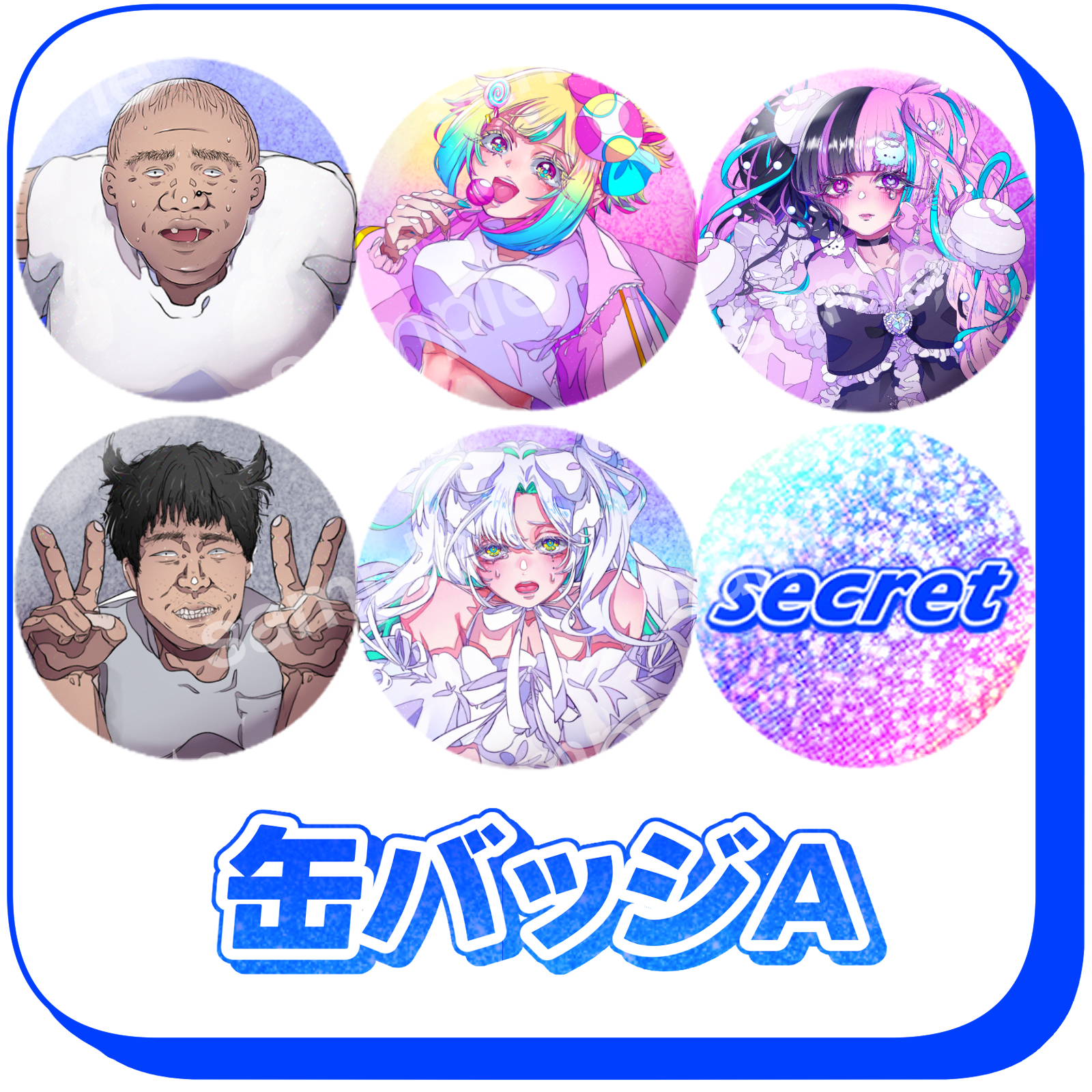 がはきゅ。アニメに登場するキャラクターたちのラメ缶バッジです。
